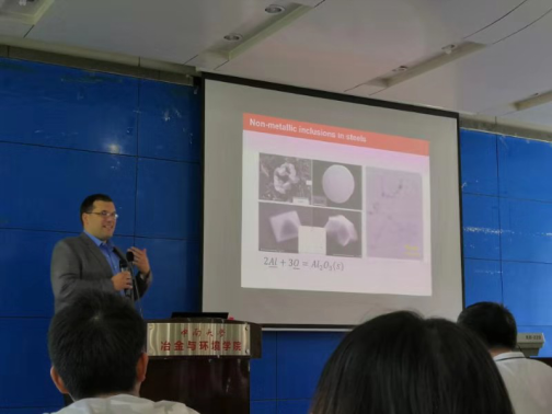 Bryan Webler教授从钢中夹杂物、钢/渣反应及FactSage宏关处理几个方面做了详细介绍。通过介绍钢中夹杂物形态、大小、数量、分布及化学成分的复杂性,说明了控制夹杂物的难度,并引出描述渣/金属反应导致镁和钙的夹杂物组成的改性的实验与建模方法。