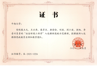 近日,由公司经理柴立元院士为课程负责人的本科生专业特色课程“冶金环境工程学”成功入选教育部课程思政示范课程,柴立元、王云燕、梁彦杰、唐崇俭、刘恢、闵小波、颜旭、李青竹等教师入选课程思政教学名师和教学团队(图1)。这标志着公司在课程思政教学体系建设方面取得重要突破。