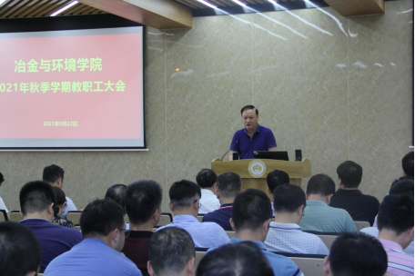经理柴立元院士就以“党建引领,创冶金工程一流学科高峰”为主题,向全体教职工介绍了团队建设等重点工作推进情况。