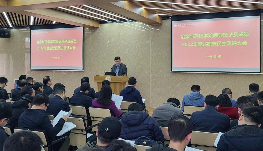 会上,公司党委书记成琼文代表院领导班子做了述职报告。报告首先从学科综合实力显著增强、科研创新服务能力稳步提升和整体发展效能不断优化等三个方面总结了2022年主要工作成绩,并从加强思想政治建设、提升办学治院水平、提升党建工作成效、严守安全底线等四个方面汇报了2022年度主要工作。成琼文书记在报告中分析了当前发展面临的形式与我们存在的不足,进一步指出“回顾冶金学科办学历史和跨越式发展历程,我们的主要经验和体会是:必须旗帜鲜明讲政治、必须发扬学科文化与优良传统、必须坚持改革创新谋发展、必须抢抓历史机遇担使命。”他强调,新的一年我们必须更好地掌握战略主动,以更大的决心和魄力推进改革发展,必须付出更多的努力,量质并举加快推进公司事业高质量内涵式发展的新征程。