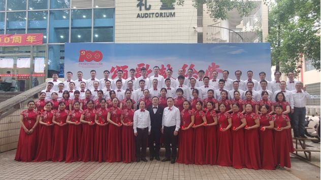 合唱方案确定以后,公司教职工纷纷踊跃报名参加。在合唱排练过程中,公司党政工高度重视,成琼文书记全程参与合唱排练,积极协调解决排练过程中的各项困难和问题;柴立元院士多次亲临训练现场,鼓舞教职工士气;青年教师胡文吉豪担任指挥,坚持多次反复练习,确保每个指挥动作都准确到位;公司教职工克服各种困难,按时参加合唱排练,积极配合公司的安排,保障合唱效果;院部门工会委员宗传鑫、夏隆巩、关文娟等认真组织筹备,从各个声部人员确定、邀请专业老师指导训练、声部集中排练、服化道选定、后勤保障供给等各环节精心组织,全力做好保障工作,先后组织14次排练,每次至少2小时,教职工们充分展现了冶金人勇于担当和甘于奉献的深厚学科文化精神。6月18日上午校工会常务副主席陈玉如来公司对合唱节目进行指导,他们对公司合唱节目给予了充分肯定,极大地鼓舞了公司教师们的参赛信心。