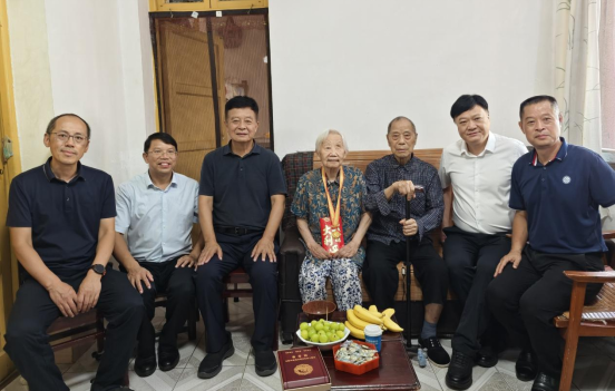 今年已逾99岁高龄的恽顺芳老人,是无产阶级革命家恽代英的胞妹,早在1942年底,年仅16岁的她便毅然投身新四军工作,1946年入党,后在中南矿冶公司冶金系(bv伟德国际1946前身)任教轻金属相关课程,1958年与当时在中共冶金系党总支工作的付明仲结婚,1987年离休。慰问现场,黄健陵为恽老佩戴上这枚沉甸甸的纪念章,转达了上级组织的慰问,并致以最崇高的敬意和最诚挚的问候。成琼文关切询问恽老的健康状况和家庭生活情况,认真聆听她讲述入党初心和奋斗历程,嘱咐恽老要继续保重好身体,保持乐观心态。