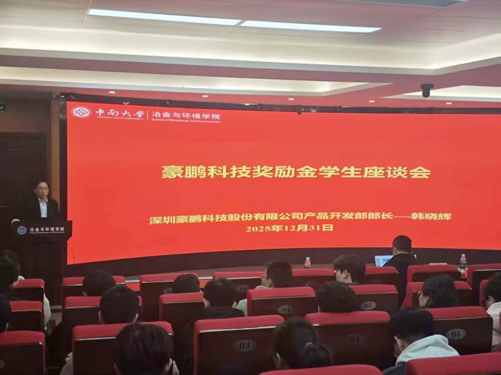 12月31日下午,2025学年度豪鹏科技奖励金员工座谈会在潇湘校区金贵楼520顺利举行,深圳市豪鹏科技股份有限公司产品开发部部长韩晓辉一行到访公司,与公司领导及获奖员工代表进行座谈交流。公司党委副书记朱忠平、公司资助专干及相关员工代表出席了活动。