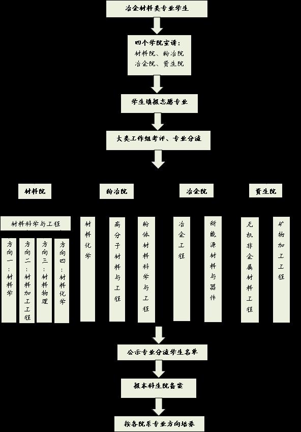 冶金材料类专业分流工作从大一第二个学期四月份开始(具体时间以本科生院的通知为准),具体步骤如下: