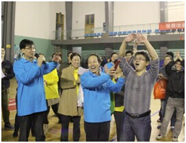 比赛共有机关(钢铁联队)、重冶、轻冶(碱法所)、环境、稀冶、冶化6支队伍参加,每支队伍由10名男老师和2名女老师组成。比赛采用三局两胜单淘汰赛制。老师们统一身着蓝色和黄色运动服,一改往日课堂上的严肃形象,变身“热血战士”,以饱满的热情和必胜的气势投入到比赛当中。最后,轻冶(碱法所)教职工精诚团结、奋力拼搏,经过三轮七次激烈争夺成功突围,获得冠军!